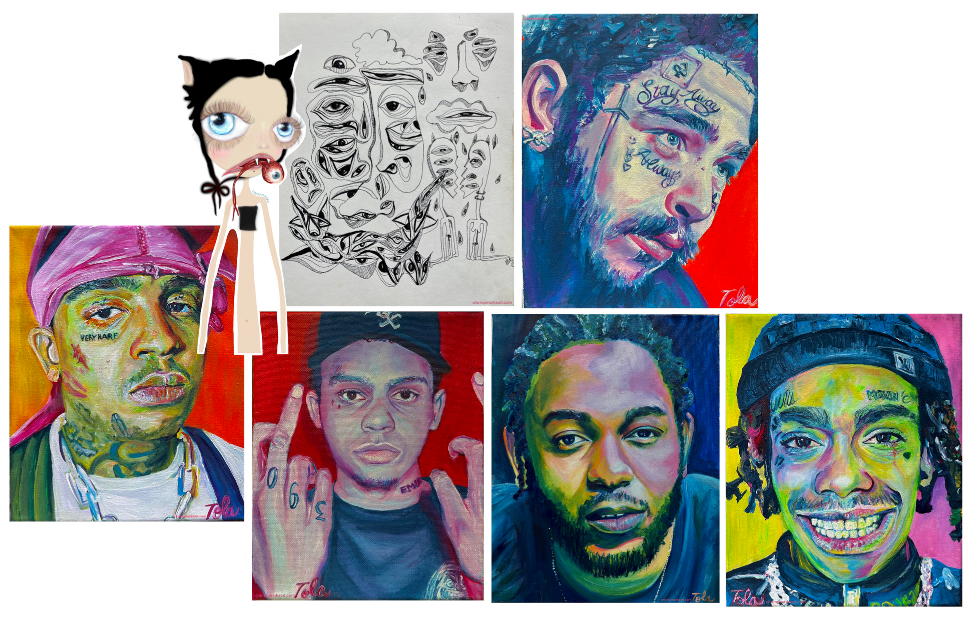 This pack contains a variety of stickers, printed on glossy, white vinyl sticker paper. Stickers come custom cut and cropped and vary in size, depending on original artwork, from about 1.25-2.5 inches in width to about 3 inches in height.